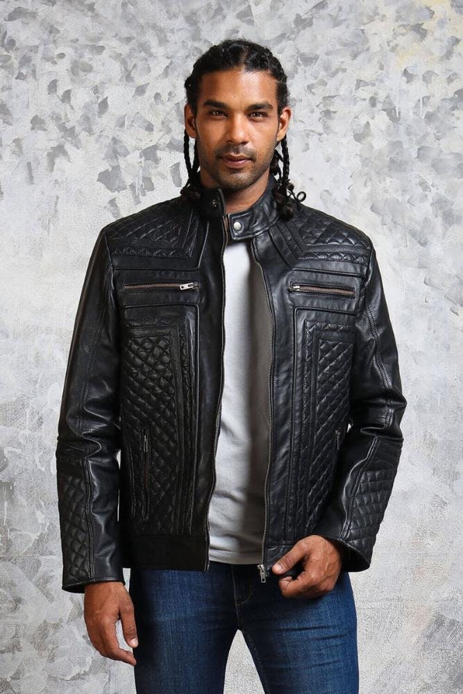 Quilted Jacket Men's Biker Skull Leather Jacket