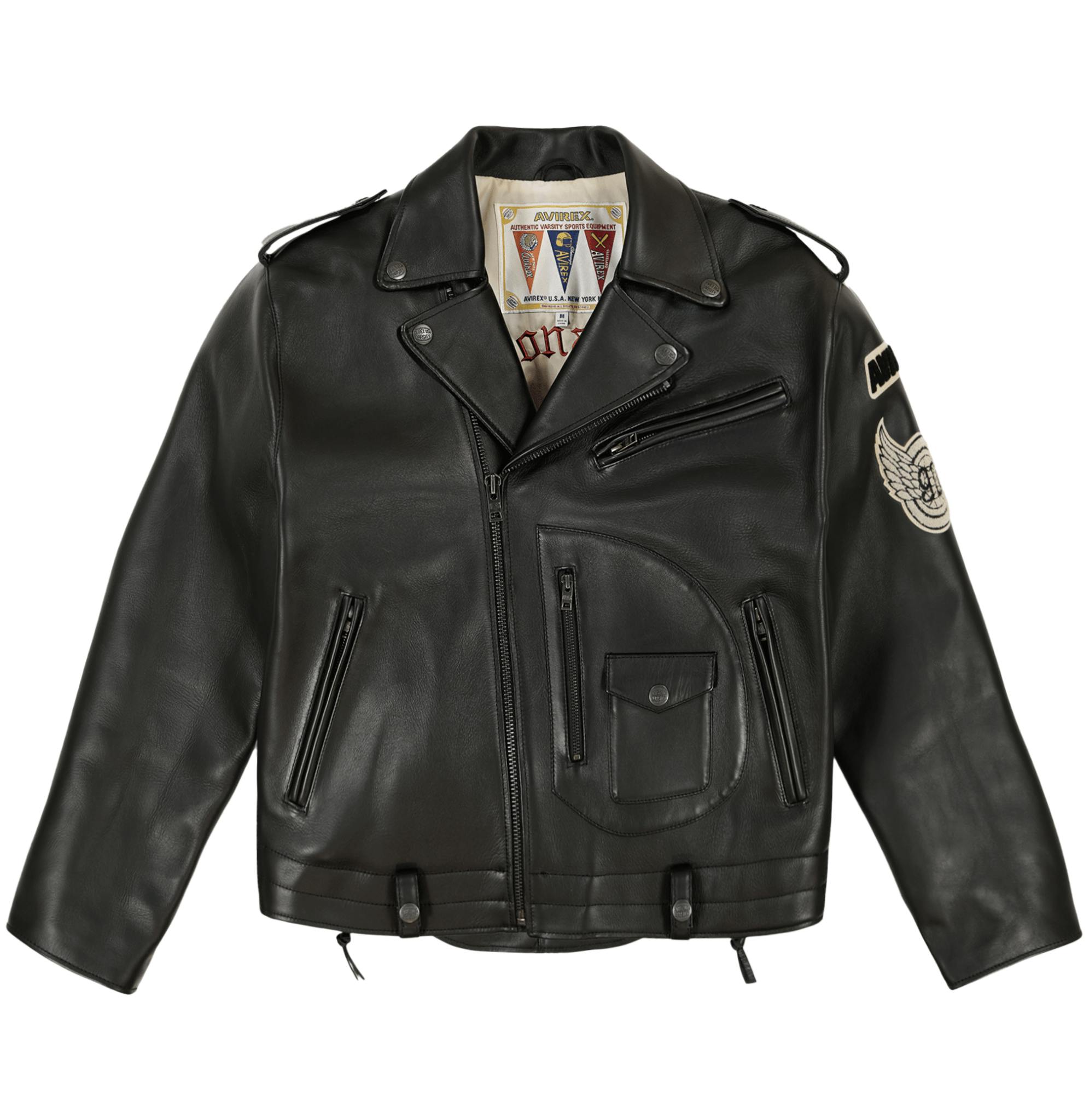 Motorcycle jacket in 100% leather. Features USA tour art at back and patch at sleeve.